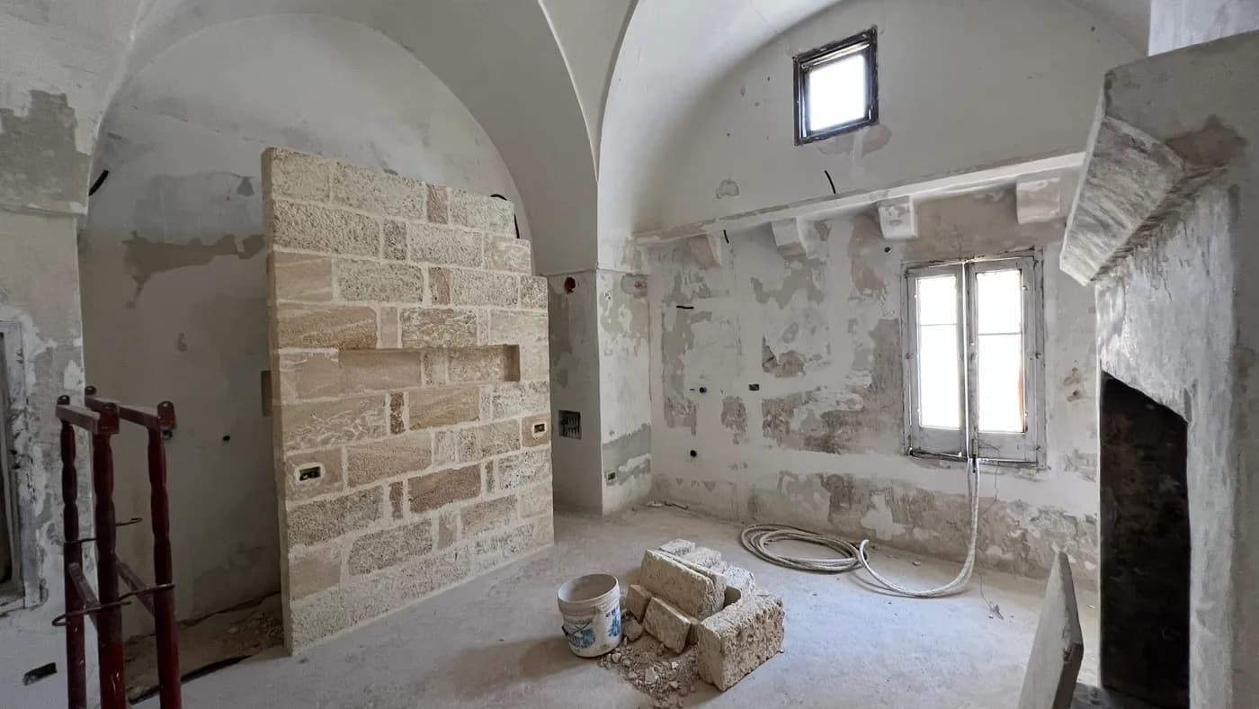 Palazzetto Vico San Marco was found in a state of complete abandonment. Ancient vaults hidden under layers of modern plaster. Lecce stone floors covered over. Original structures concealed by past interventions that had erased its identity.