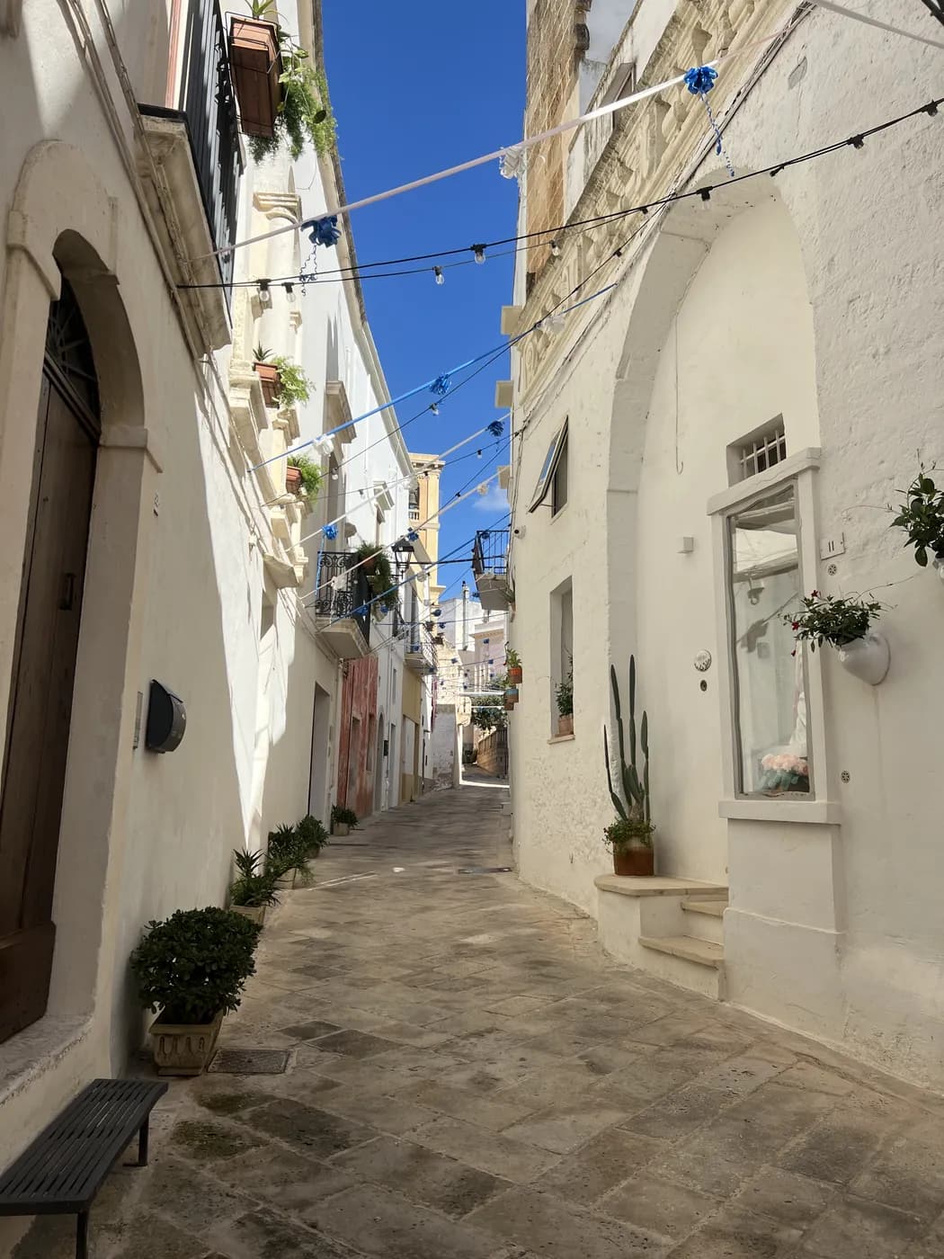 La pietra leccese è la materia di tutto: chiese, palazzi, vicoli, archi. Si illumina al tramonto con una luce dorata che non esiste altrove. I centri storici del Salento si attraversano a piedi, lentamente, scoprendo corti nascoste e facciate barocche.