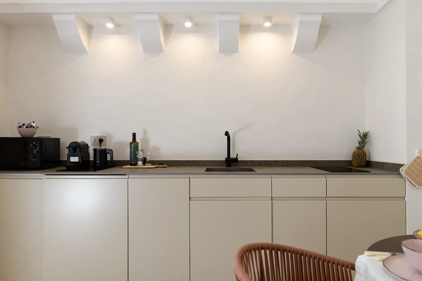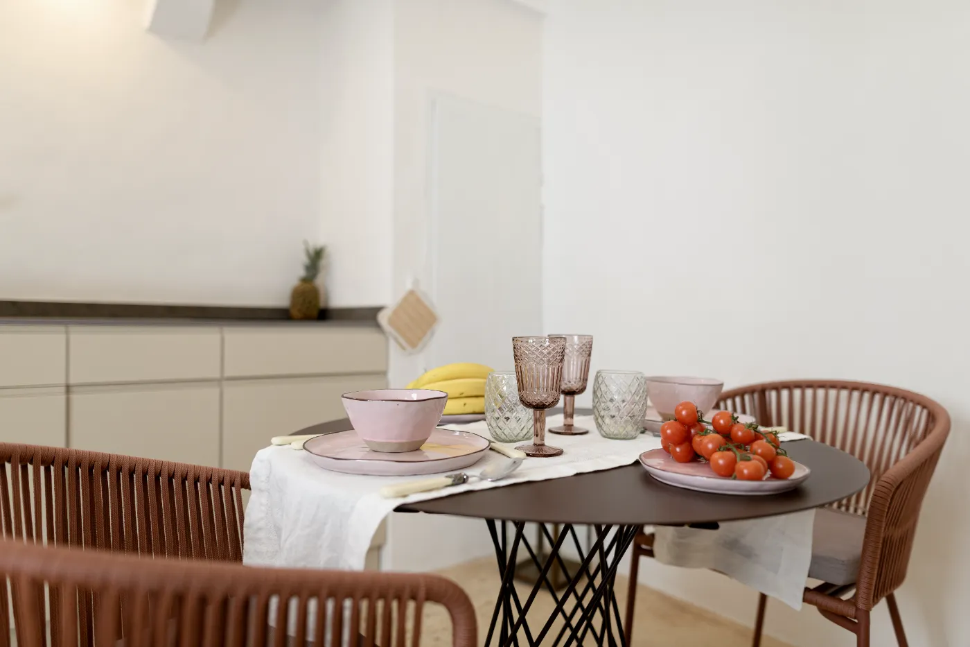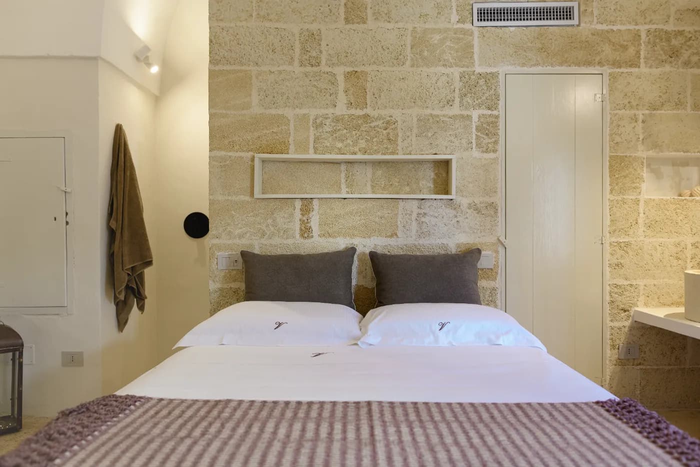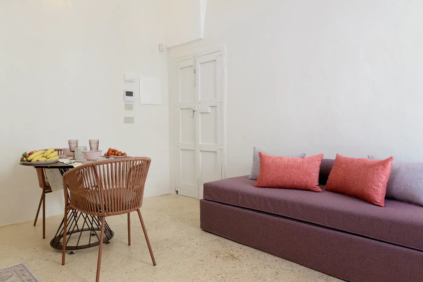 Ogni elemento è stato pensato per valorizzare la posizione unica: al primo piano del palazzo, tra i tetti del centro storico di Parabita, con una vista che spazia dalla torre dell'orologio fino alla costa ionica.