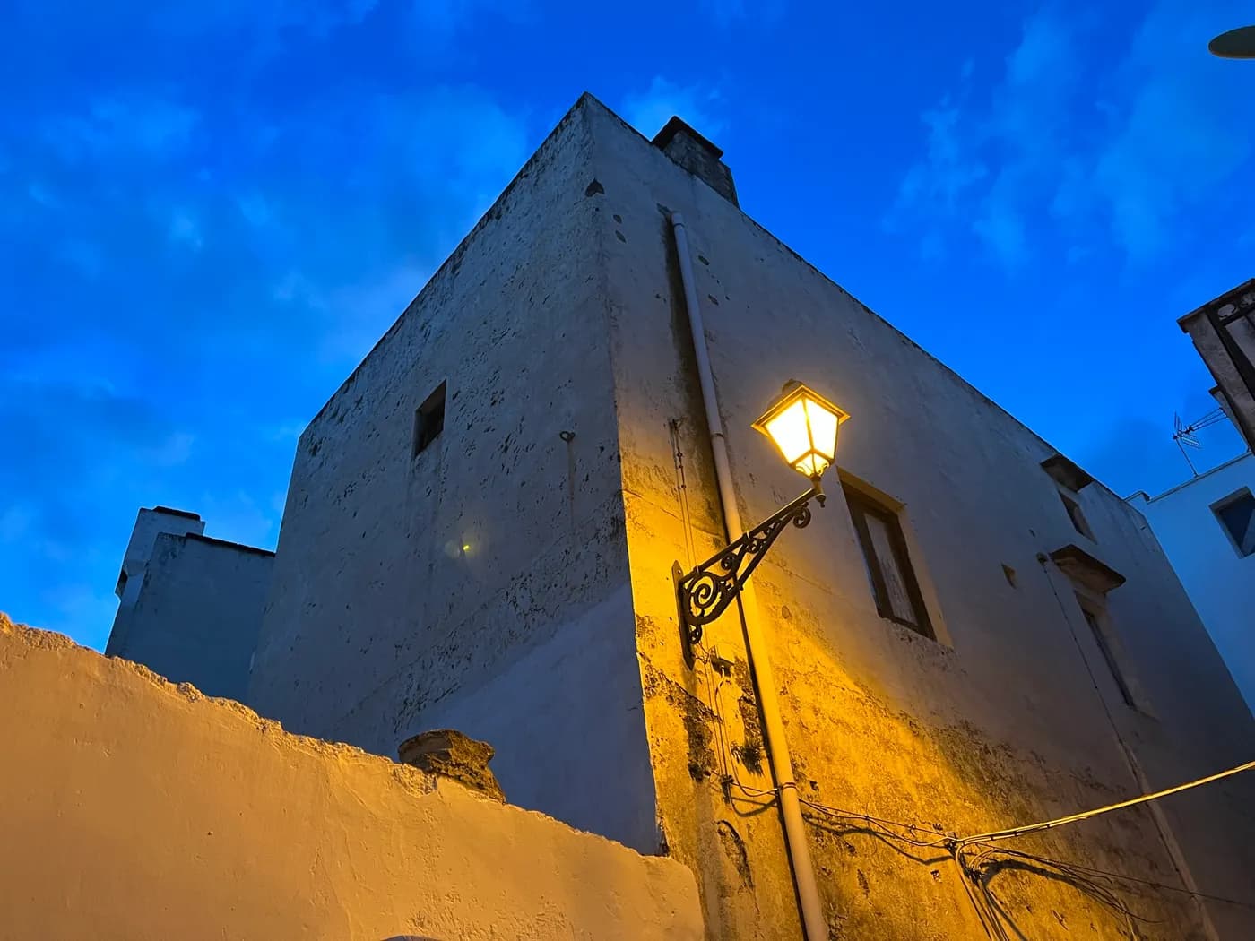 Oggi è il cuore dell'appartamento La Terrazza: arredata con cura, con la doccia in rame all'aperto e una vista che nelle giornate limpide arriva fino al mare di Gallipoli.
