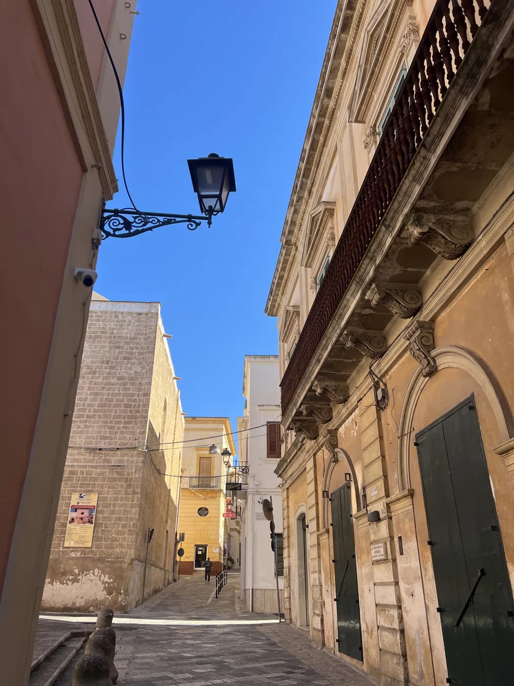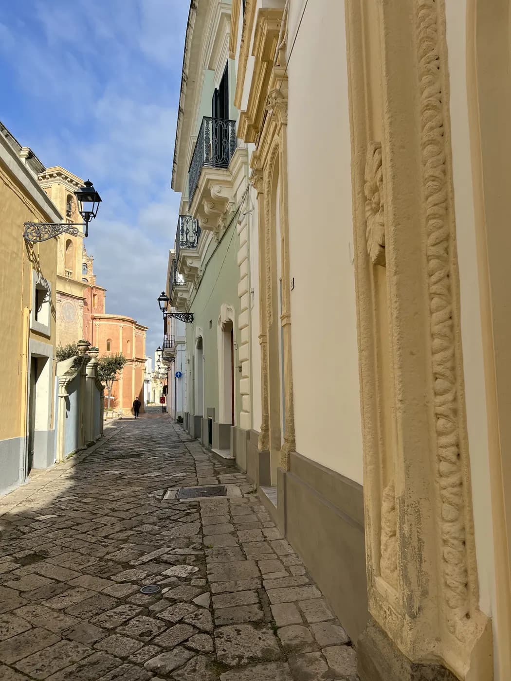 La pietra leccese è la materia di tutto: chiese, palazzi, vicoli, archi. Si illumina al tramonto con una luce dorata che non esiste altrove. I centri storici del Salento si attraversano a piedi, lentamente, scoprendo corti nascoste e facciate barocche.